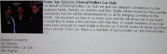 Sorry for not keeping up to date in this section of the site. We all have been terribly busy with projects and getting ready for the summer season. It may be quiet now but get ready for us this summer! Eternal Rollerz will shine in 2006! RIP Eddie Guerrero We are saddened by the recent and sudden passing of wrestler Eddie Guerrero. Our official statement: RIP Eddie Guerrero